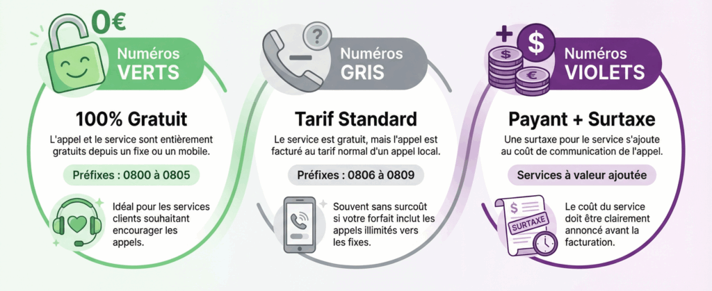 Numéros verts, gris, violets, 08, 089, SVA… difficile de s’y retrouver sans un minimum de repères. Pourtant, ces numéros restent stratégiques pour beaucoup d’entreprises : service client, accueil téléphonique, assistance, campagnes marketing, etc.
